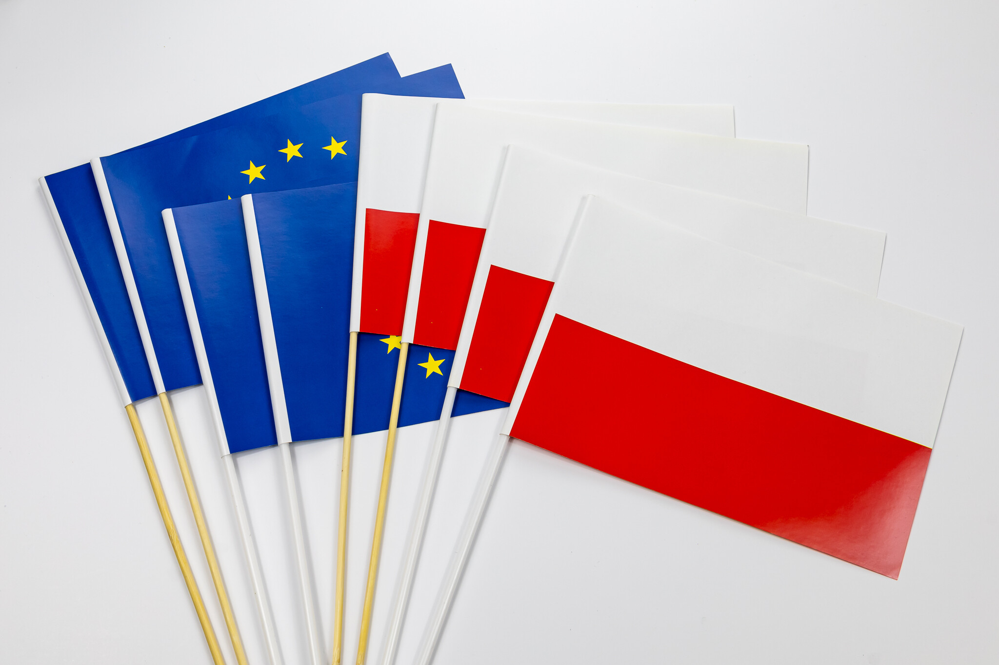 Chorągiewki biało-czerwone i w barwach UE – proponujemy w stałej sprzedaży.