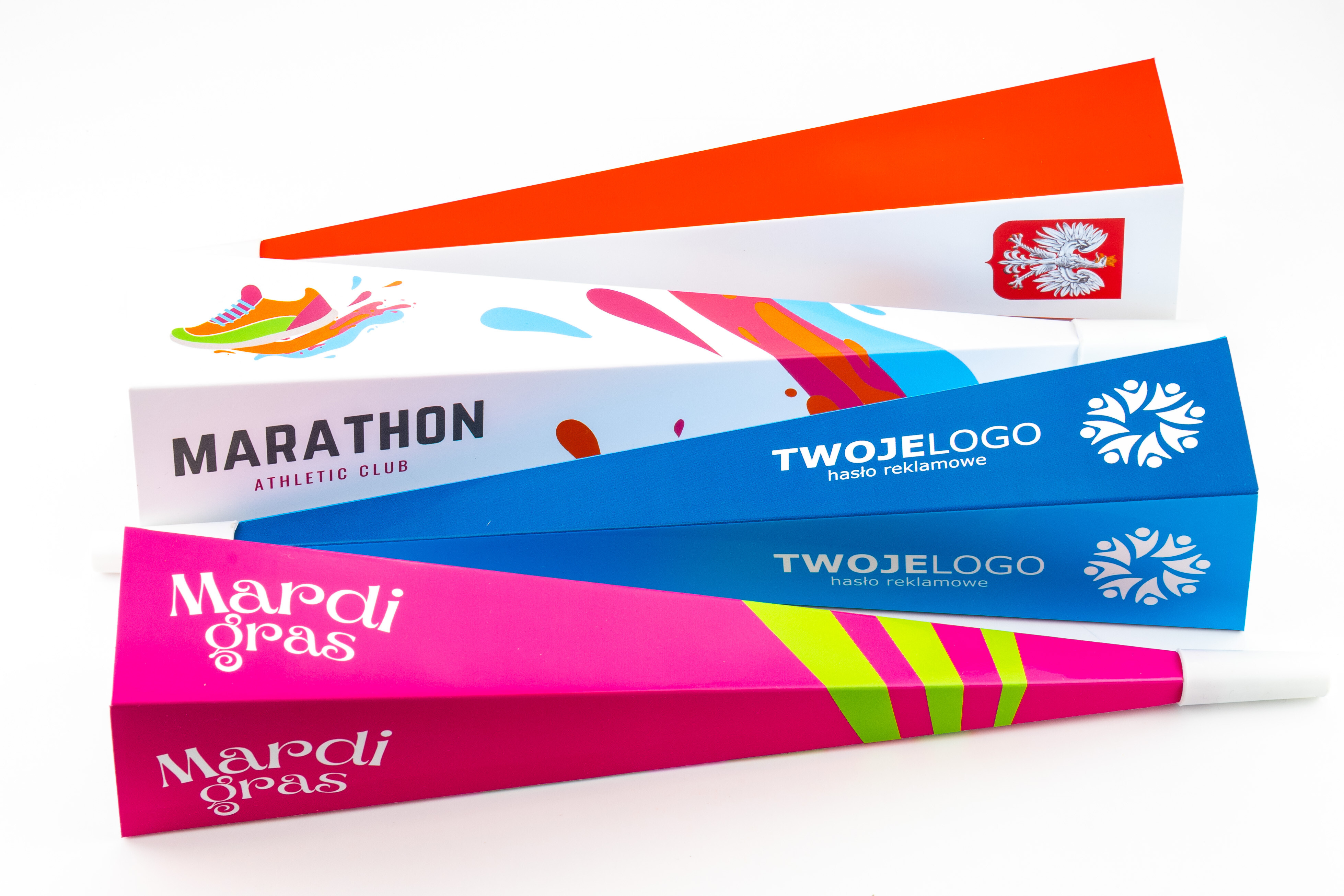 Nasze trąbki kibica są idealnym wyborem dla każdego, kto pragnie intensywnie wspierać drużynę podczas wydarzeń sportowych, festynów i innych imprez. Dzięki intensywnemu dźwiękowi przyciągają wzrok do Twojej reklamy.